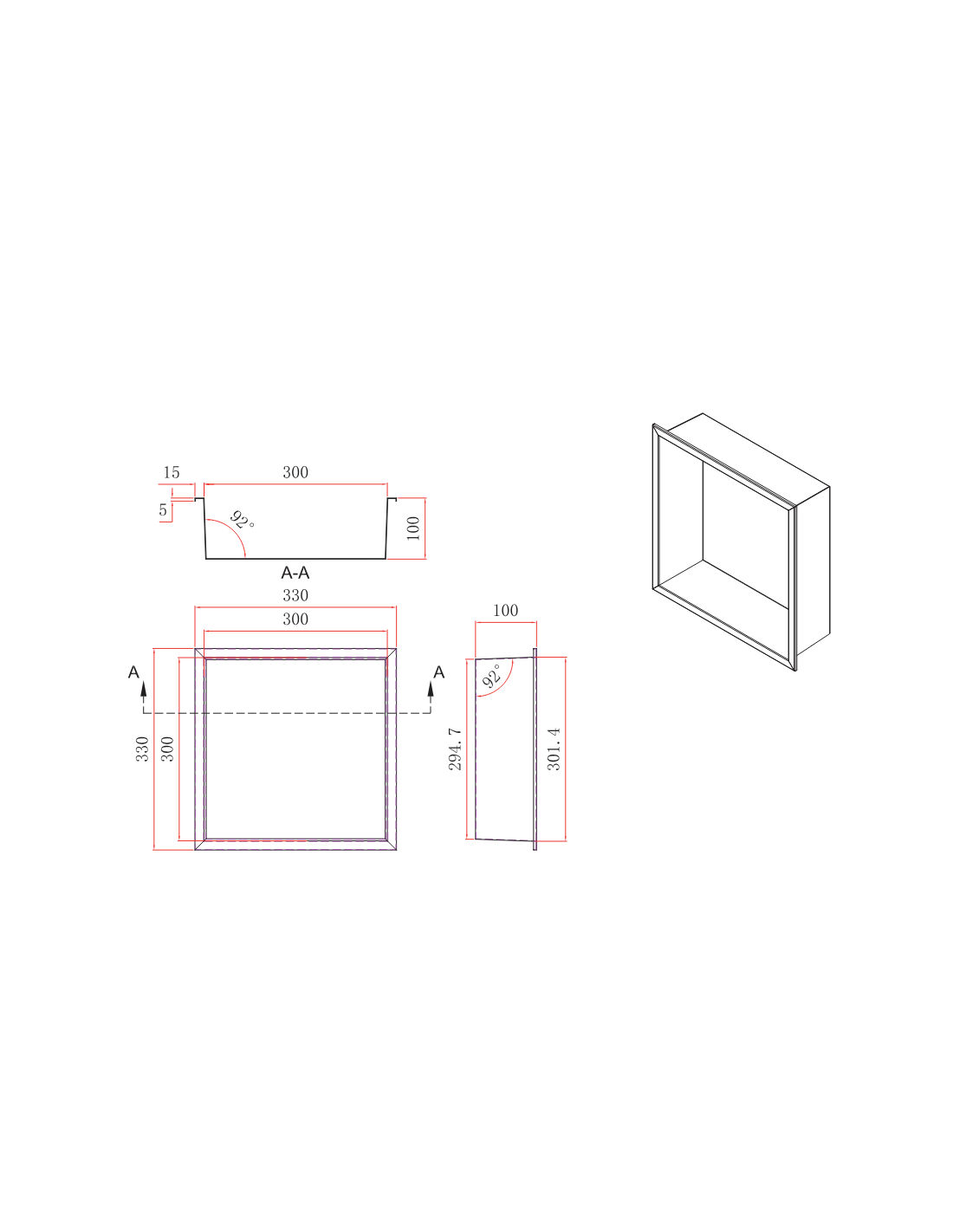 Fabriquée en **acier inoxydable S.304**, cette niche offre une excellente résistance à la corrosion et un entretien facile.